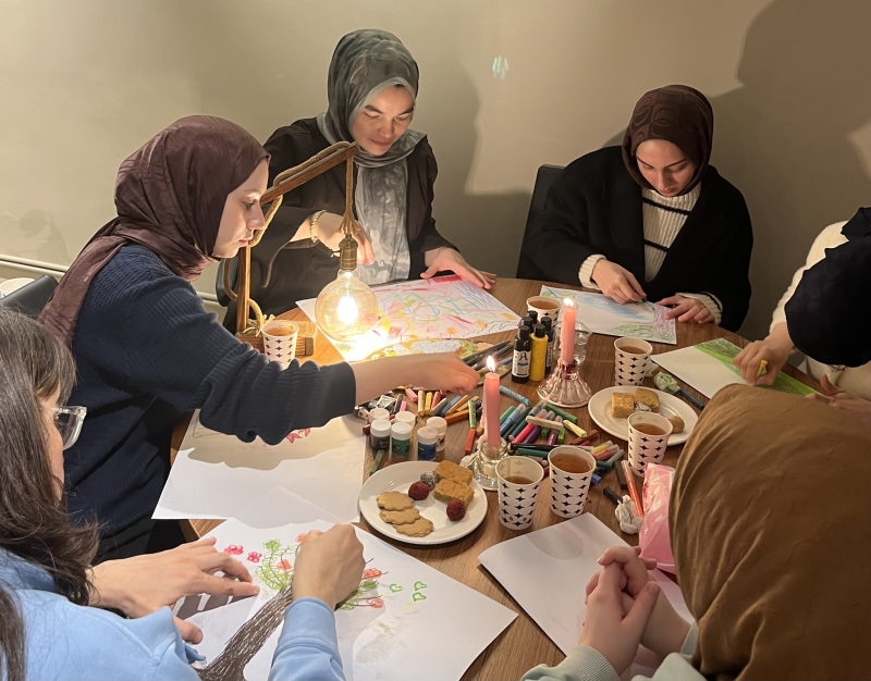 Dr. Öğr. Üyesi Duygu Yalman Polatlar Hoca’nın eşliğinde yürütülen atölyede katılımcılar, teknolojik araçlardan bilinçli olarak uzaklaşarak sakin ve güvenli bir ambiyansta bir araya geldi. Etkinlik süresince kitap okuma, resim yapma ve içsel farkındalığı destekleyen yaratıcı etkinliklerle katılımcıların kendileriyle daha derin bir temas kurmaları amaçlandı. Bu süreç, katılımcılara yalnızca dinlenme değil, aynı zamanda içsel dünyalarına yönelme ve duygusal yenilenme fırsatı sundu.
